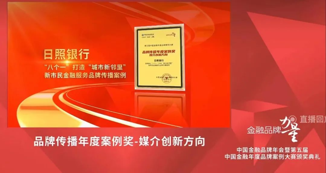 3月28日, 中国金融品牌年会暨第五届中国金融年度品牌案例大赛颁奖典礼在北京举行,“日照银行‘八个一’打造‘城市新邻里’新市民金融服务品牌传播案例”入选品牌传播年度案例奖-媒介创新方向。