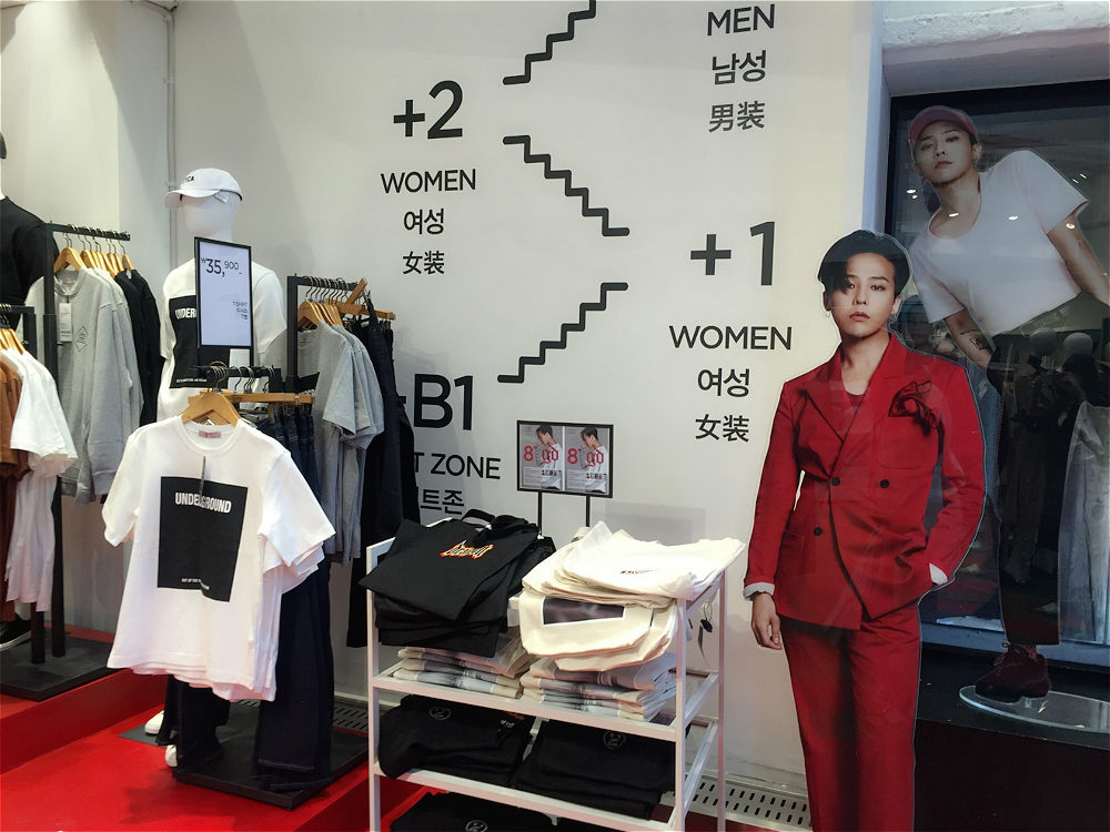在9月30日开业的前一天,店铺从韩国请来G-Dragon为其合作限量款“8’’xGD Collaboration”站台。闻讯赶来的粉丝次日开业大清早就排起队,最终心满意足地买回明星同款红色刺绣飞行员夹克。