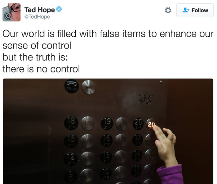 “我们的世界充满了各种谎言,它们想让你觉得一切都可以被自己掌握,然而事实却是:你根本无法控制任何事。”