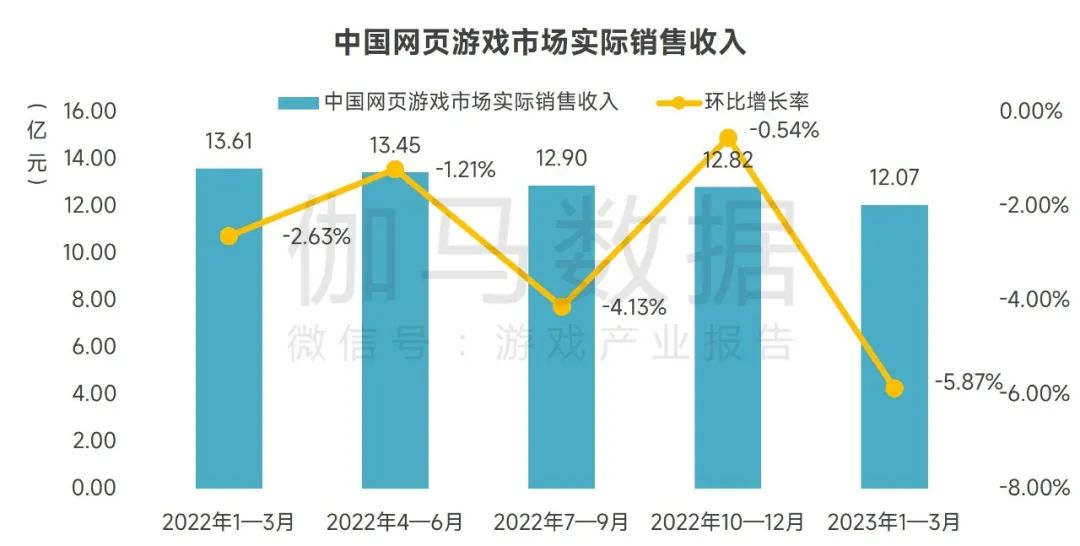 2023年1—3月网页游戏市场规模:市场规模12.07亿元 连续5季度环比下降