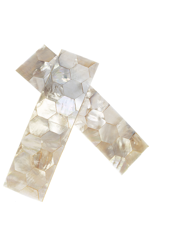 珍珠母贝镶嵌这一工艺自文艺复兴开始常运用于贵族的家具、珠宝、餐具、乐器等,工艺源自意大利东北部贝加莫 (BERGAMO) ,Jumbo Collection 将采自东印度群岛、印度洋、红海等地的优质珍珠母贝,经严苛遴选后撷取内部的珍珠层。因母贝产地不同而形成的天然色泽差异,在镶嵌组合后形成色彩斑斓的纹饰。