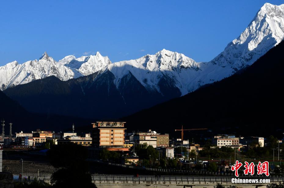图为5月13日,雪山脚下的波密县城。