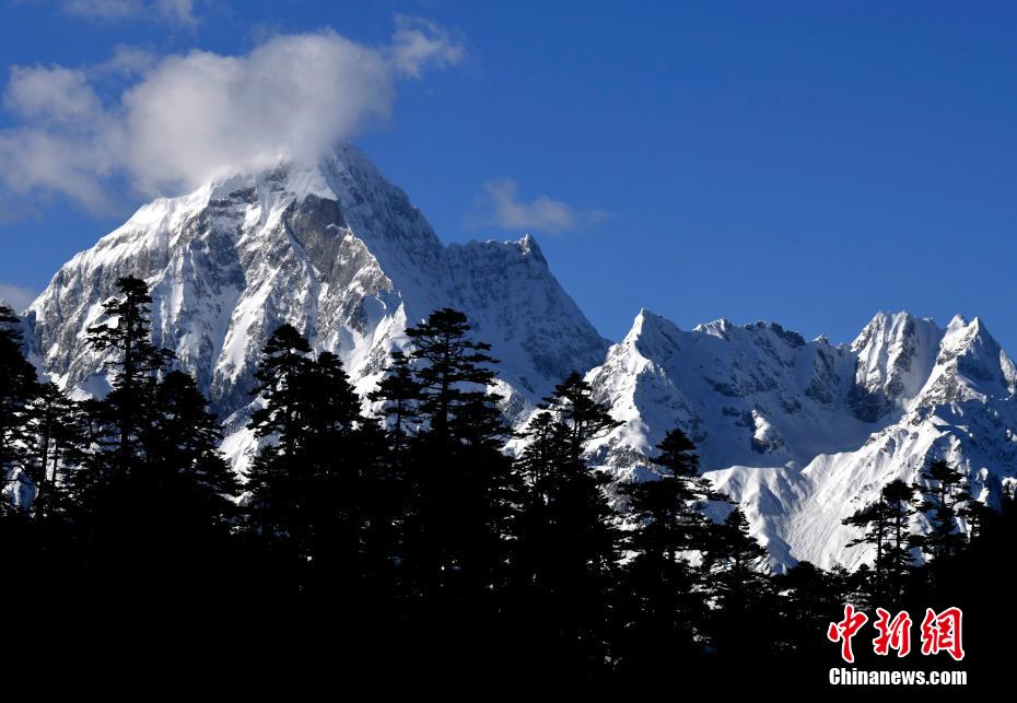 图为5月13日,西藏波密县原始森林与雪山风光。