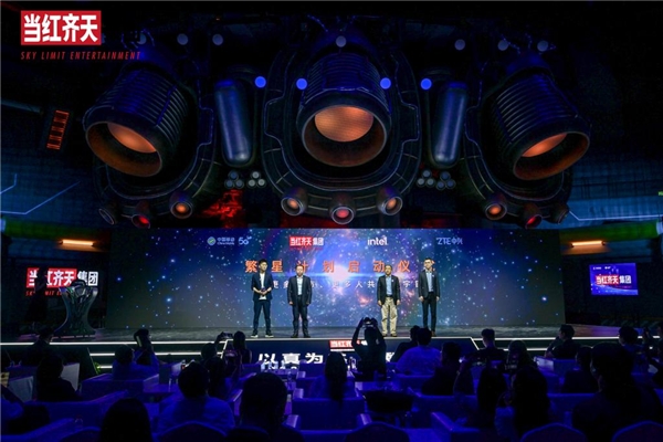 大会最后环节,当红齐天“5G XR繁星计划”与VR电子竞技国际大赛联动发布。仪式由北京移动重要客户中心副总经理杨浩源、中兴通讯北京分公司CTO吴为、英特尔运营商事业部中国移动大客户总监高志勇和当红齐天集团电竞事业部总监杨晓帅一同启动。