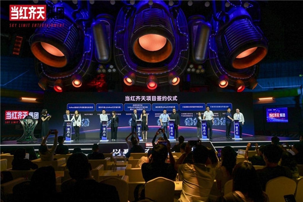 战略发布会现场,当红齐天集团分别与扬州泰州国际机场投资建设有限责任公司、牛首山文化旅游集团、双流空港兴城集团、湖州南浔文旅发展有限公司、大连旅顺太阳沟文化产业园区管理委员会、中建八局文旅博览投资发展有限公司分别签署项目合作协议。当红齐天集团将与各方协同赋能,携手共进,共创元宇宙产业发展的无限可能,赋能千行百业数智化发展。