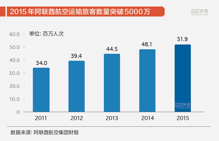 阿联酋航空于2004年进入中国市场,那时中国民航业还处在起步阶段,但随后几乎每年保持10%以上的增长速度。2015年中国航空公司运输旅客超过4亿人次,出境游人数达到1亿,这些都在说明中国民航市场蛋糕正在越来越大。