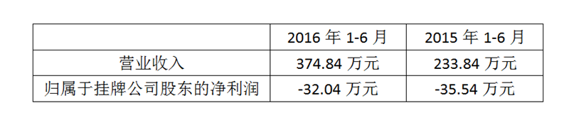 雅达养老是一家主要面向养老企业服务的公司,提供养老产业的规划、建设和运营。根据该公司2016年上半年报告显示(如下图),截止2016年6月30日,雅达养老营业收入为374.84万元,较上年同期增长60.30%;归属于挂牌公司股东的净利润为-32.04万元,上年同期净利润为-35.54万元。