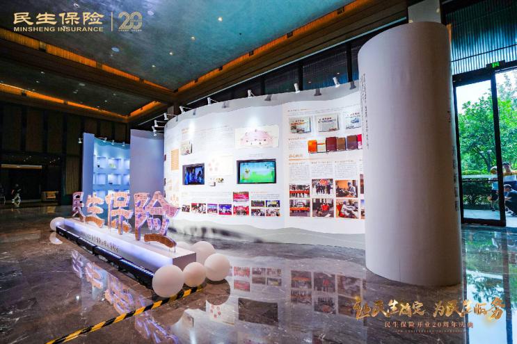 此次庆典现场特设“民生二十载 不忘来时路 开辟新征程”主题展,作为本次20周年司庆盛典外场搭建的一大亮点,以长达10米的卷轴为实物载体,分为民生大事记、党建引领、董事长深入基层、综合实力、以用户为中心、员工发展、益心向善、荣誉嘉奖八大板块,各大板块与贯穿民生发展20年的老物件相互结合呈现,相辅相成、相得益彰。以“文字+图片+视频+实物展示”的形式展现民生这二十年来的发展与成就,现场配以光影效果,以不一样的视觉冲击力呈现民生二十载芳华。