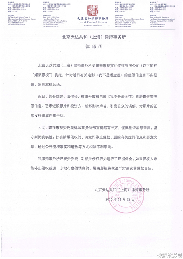 冯小刚炮轰万达的纠纷刚过去没几天,《我不是潘金莲》又被网友曝出刷票房,在全国多家影院出现了午夜场售罄的状态。对此,影片发行方耀莱影视昨夜发布律师函称,“近日不断有关于影片‘幽灵场’和‘票房注水’的虚假信息和不实报道恶意诋毁影片和投资方,公司将依法严肃追究其侵权责任”。