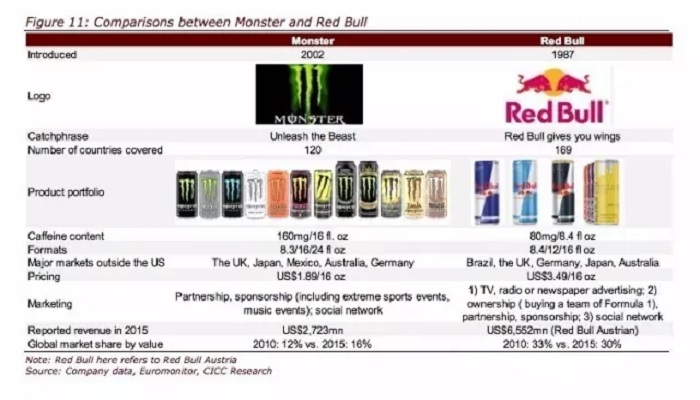 (中金公司研究报告里关于怪兽饮料和红牛的对比)