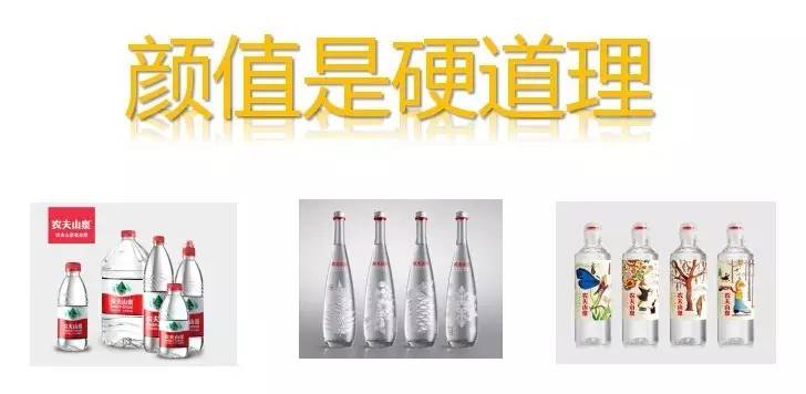 品,就是品质,品位,品相。大家看这个图,普通的农夫山泉就是左边这个包装,但当农夫山泉出了右边这两款的时候,朋友圈内就爆了。为什么?