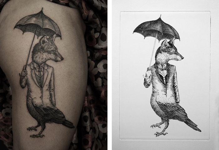 原标题:Surreal Animal Hybrid Tattoos Look Like Quirky Sketchbook Drawings