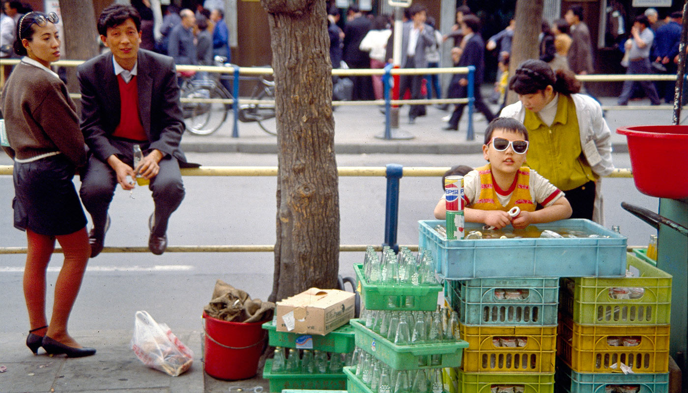 题图:卖北冰洋汽水的小摊,1990年,北京王府井。摄影:王文波。图片来源:视觉中国。