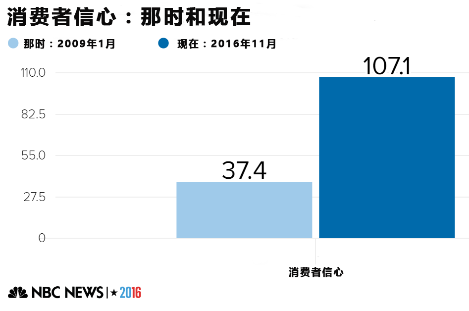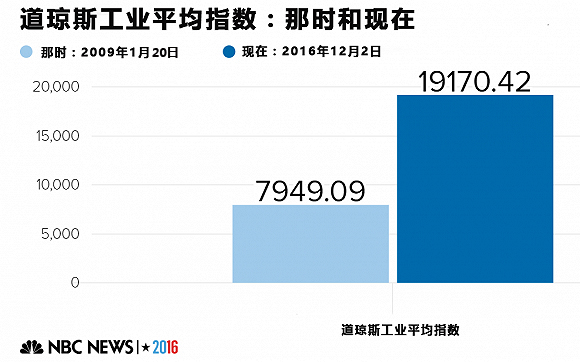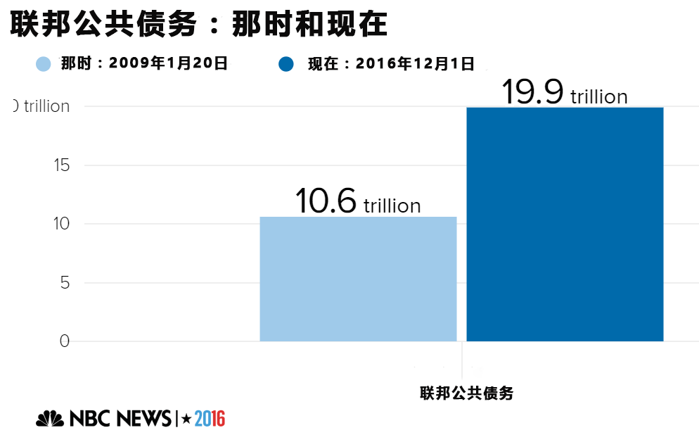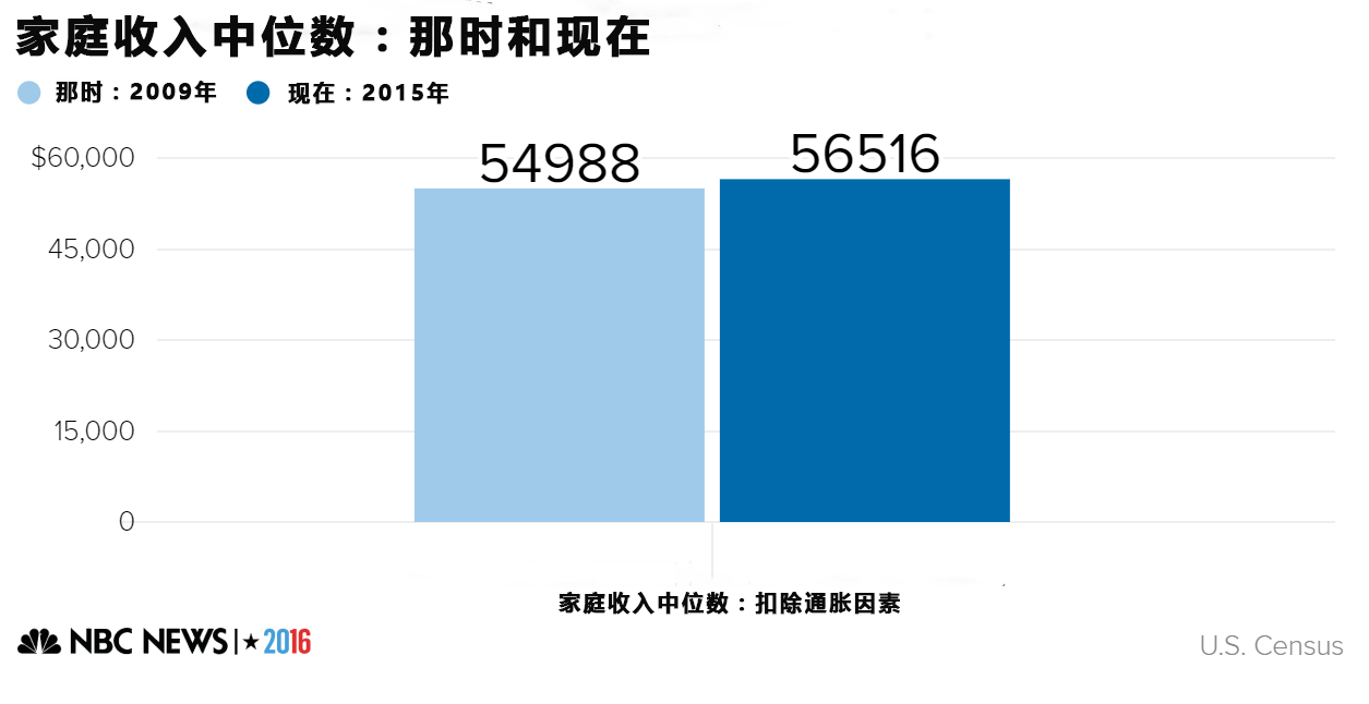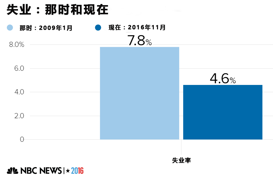 下列图表中,“那时”表示的是奥巴马在2009年上任时的数据,“现在”表示的是最近的数据。