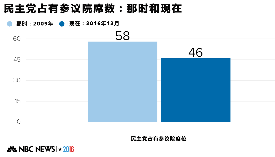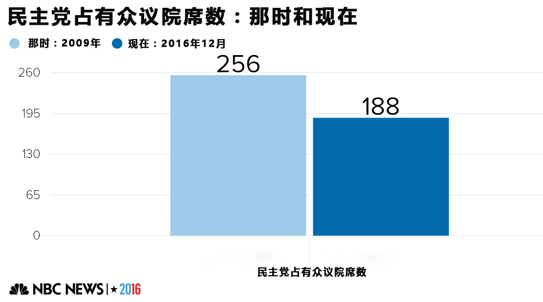 坏的方面还有奥巴马执政期间民主党的情况:奥巴马刚上台时,民主党拥有256个众议院席位、58个参议院席位和28个州长职位。现在则是188个众议院席位、46个参议院席位和18个州长职位。
