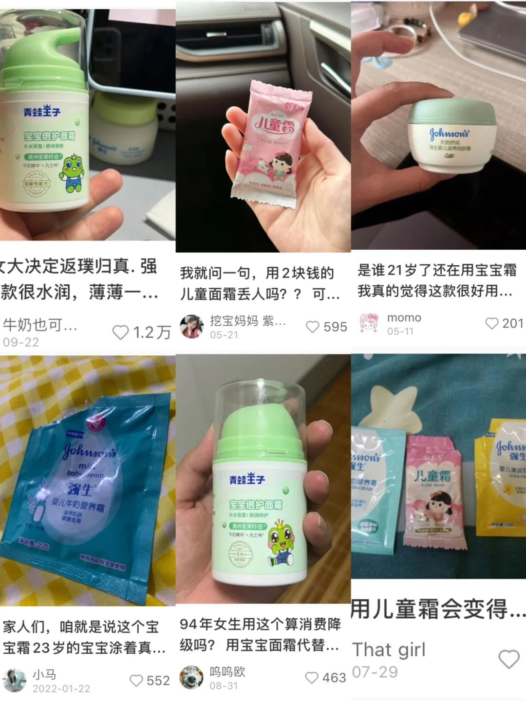 一类是将儿童霜作为中高端面霜的平替。“500的面霜,跟80的有什么不同”是不少人的心声,“02大学生返璞归真,用起青蛙王子、强生”的小红书笔记点赞超1.5万。这些人会推崇儿童霜的成分安全与质低价优,并表示:“老爸评测的红榜宝宝霜,是真好用”。