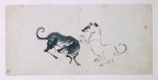 《猎犬图》南宋,李迪绘,绢本,设色。纵26.5cm,横26.9cm