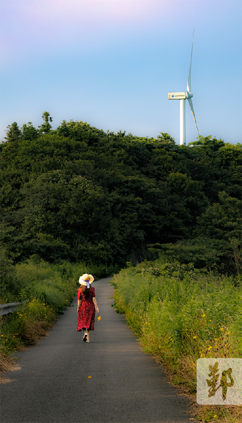 当饱览塘溪历史人文景观之后,如果还有闲暇,傍晚时分你亦可以驱车登顶白岩山,到宁波最美风车公路上漫步、欣赏日落。银白色的巨型风车一座连着一座,伫立在曲折蜿蜒的山岗上,或隐于云端。风车、野花、晚霞,唯美的景象会让你忘却生活的疲惫,心境豁然开朗。