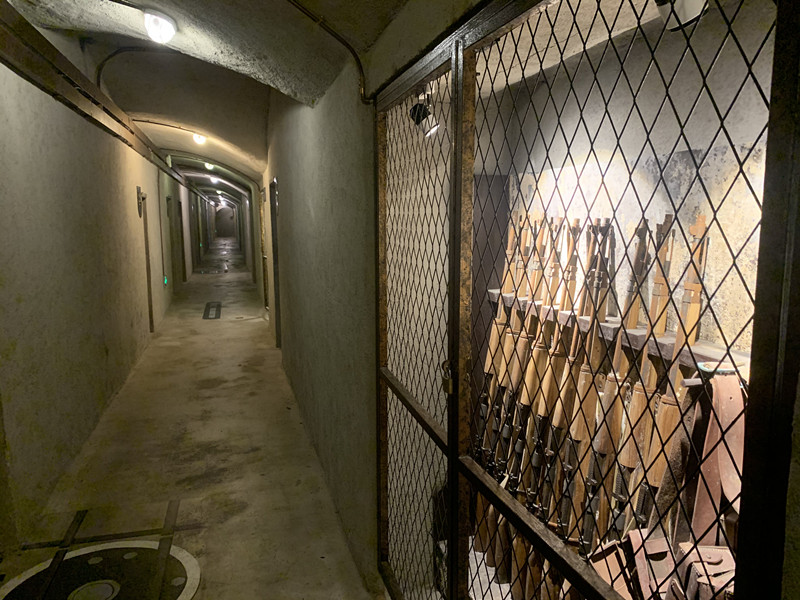 炮台遗址约2000余平方米,40余个厅、室,大部呈三层立体结构,很难想象,一座山体之中,发电机房、锅炉房、弹药库、测绘室、蓄水池、旋转瞭望塔等设施一应俱全。
