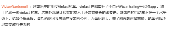 网友们纷纷表示,幕后高人肯定来自华尔街和白宫。美国扶持“越南特斯拉”,就是为了对抗中国蓬勃发展的新能源汽车产业,所谓“敌人的敌人就是朋友”。
