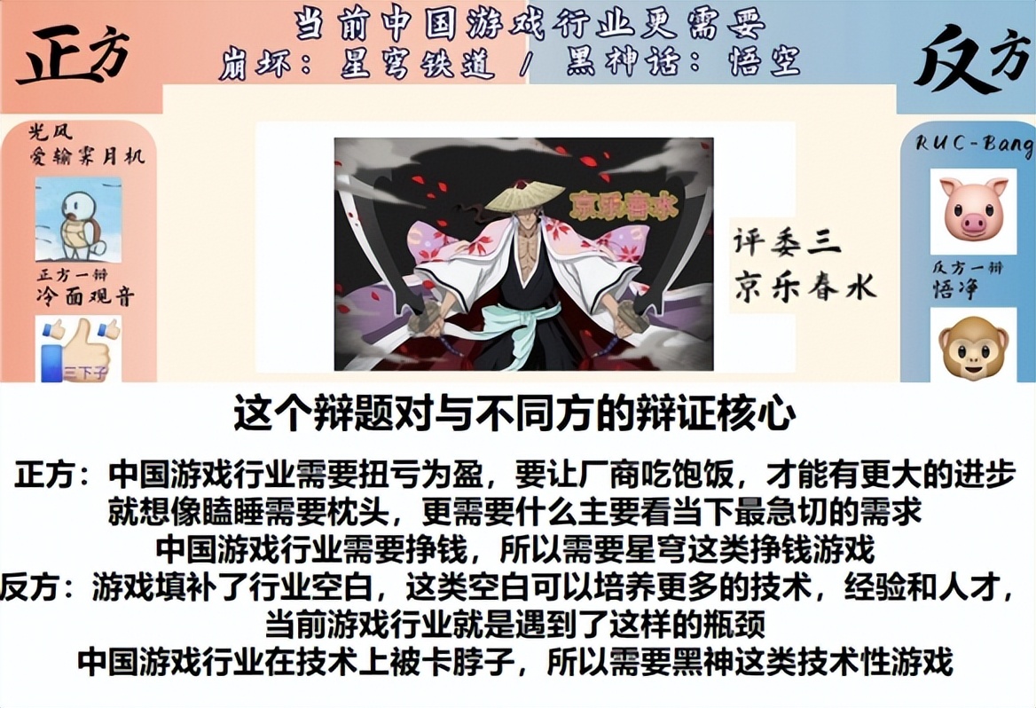 昨日(8月27日),以“星穹铁道/黑悟空,中国游戏行业未来向何方?”为辩题的华语辩论赛落幕,吸引大批游戏乐子人前来分享观点。最终反方观点“当前中国游戏行业更需要《黑神话:悟空》(这类3A大作)”,以4:1的比分拿下了比赛,有趣的是,现实却正呈现出相反的局面。
