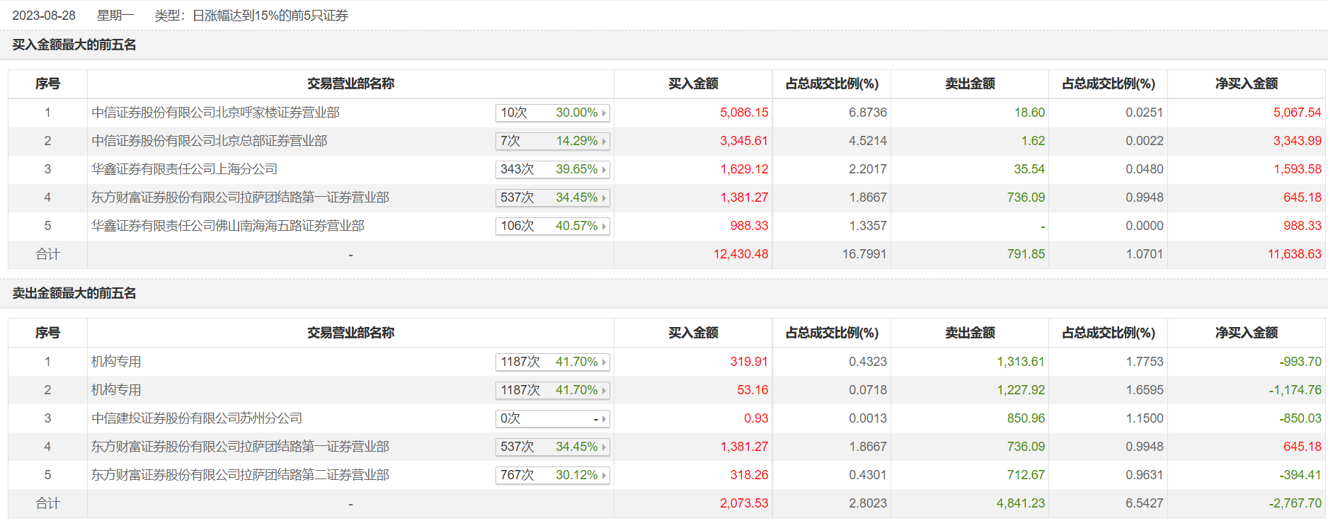 建工修复8月28日涨停,龙虎榜数据显示,上榜营业部席位全天成交1.8亿元,占当日总成交金额比例为24.35%。其中,买入金额为1.31亿元,卖出金额为4896.99万元,合计净买入8225.74万元。