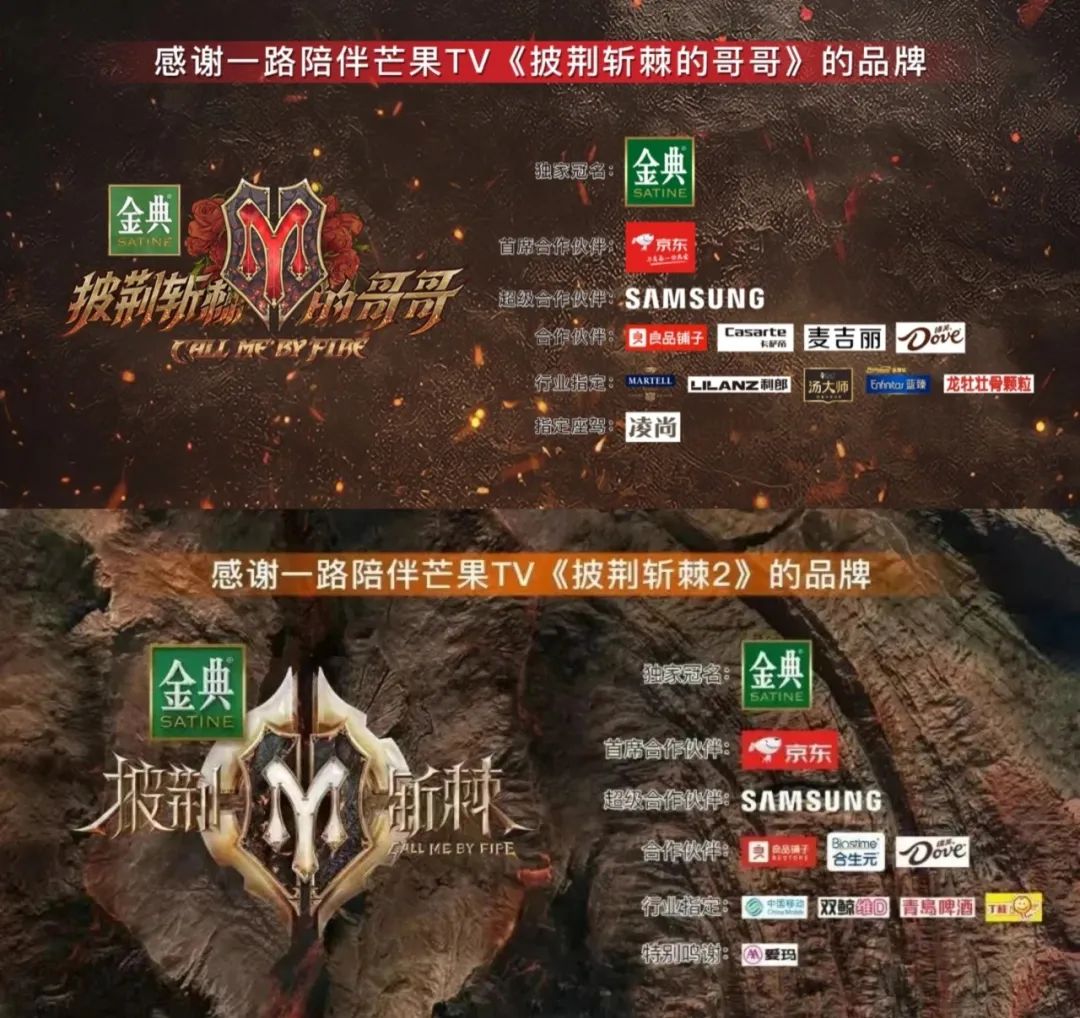 转眼到了第三季,这一季在招商环境整体相对艰难的情况下,依旧能够商务水准强势稳住,在节目开播后依旧不断有品牌加入赞助队伍。目前,“披哥3”已有11个品牌,与第二季在数量上整体持平,其中至少有9个品牌都是该系列此前合作过的品牌。从这一点上也能看出,无论是《乘风2023》还是《披荆斩棘》,品牌的认可度依旧很高。