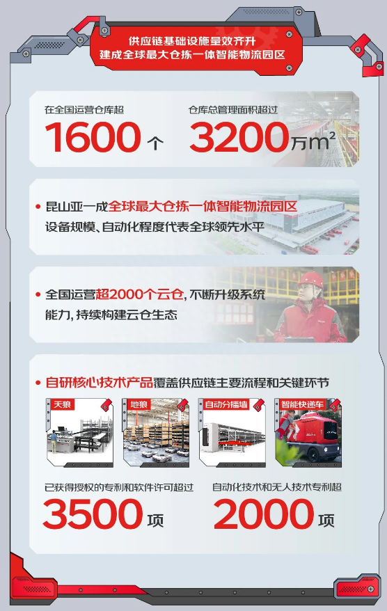 作为对比,京东物流最新财报显示,其全国运营仓库超1600个,仓库管理总面积超过3200㎡;另一边的顺丰,国内运输线路超过120000条,枢纽型中转场达39个……
