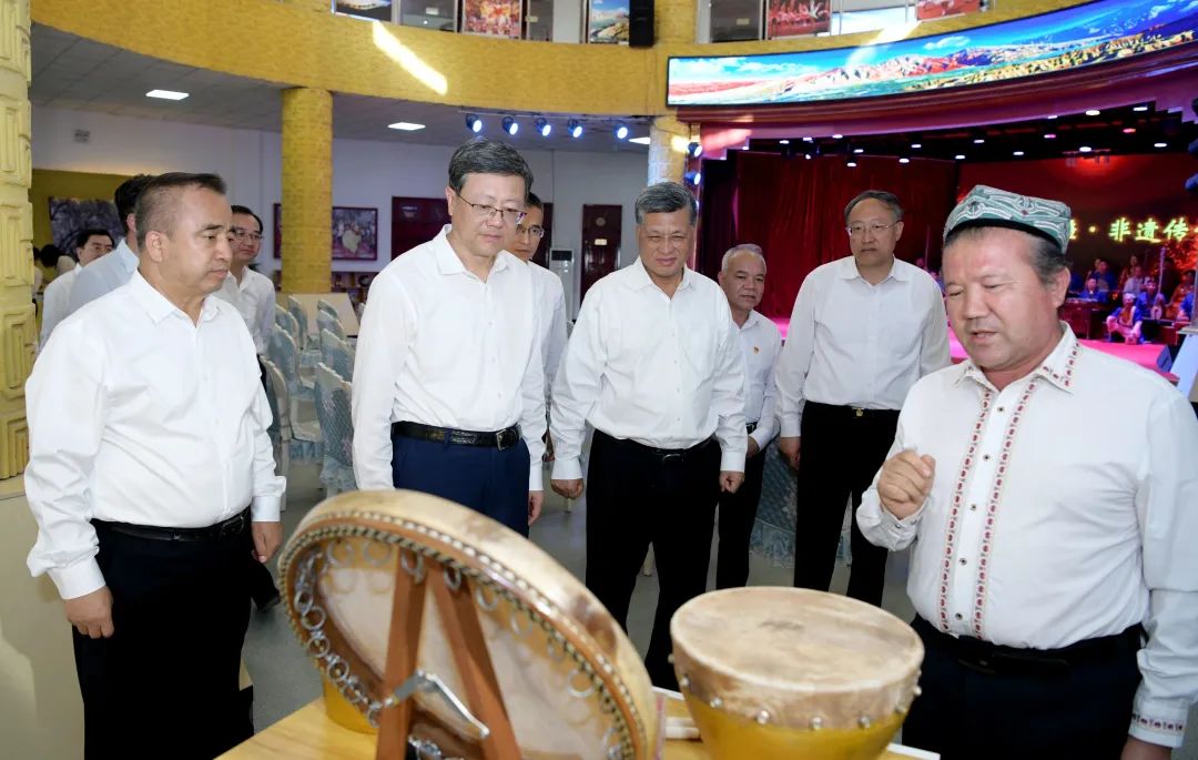 沪疆两地交往交流交融,文化润疆效应不断彰显。莎车县是文化非遗“十二木卡姆”的发源地,这种依靠口传心授方式传习至今的民间音乐艺术已有500多年历史。在上海帮助下,位于莎车县的十二木卡姆文化传承中心全力推进抢救、保护、传承和发展工作。两地领导在中心观看了非遗传承人表演的十二木卡姆片段,了解这项非遗艺术的历史脉络和保护传承。陈吉宁说,要深化文化交流机制,深入挖掘当地人文题材,结合上海文创优势,合作推出更多优秀文艺作品,在文化润心中更好铸牢中华民族共同体意识。