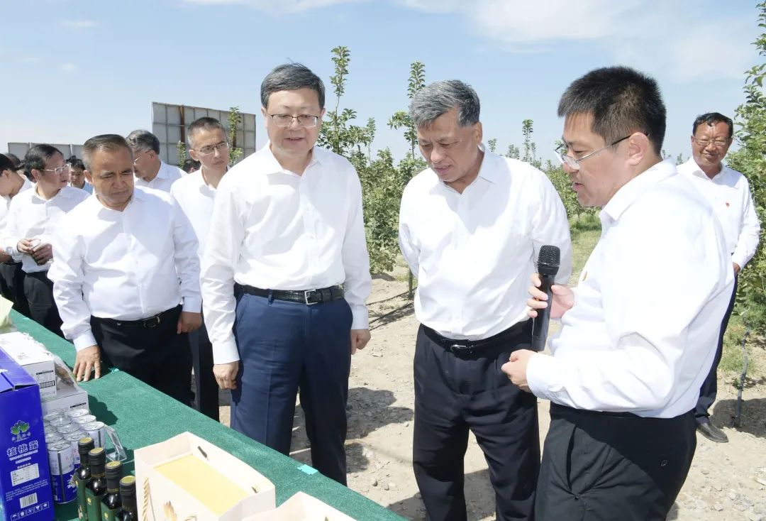 助力对口地区发展、扎实推动共同富裕,产业带动是长远之计和关键之举。代表团来到泽普县特色现代富民产业园,戈壁滩上建起的万亩果树林郁郁葱葱。陈吉宁一行走进鲜果种植基地,了解戈壁特色产业发展和援疆消费帮扶相关进展。负责人表示,产业园不仅推动当地苹果品种和种植模式提档升级,还将固定资产、生物资产量化确权到42个经济薄弱村,反哺村集体经济、带动当地就业。陈吉宁说,要把当地自然资源禀赋优势和上海的人才、技术、市场优势更好结合起来,在保护生态环境、推动绿色低碳发展的同时,因地制宜做好产业帮扶,推动更多新技术、新模式、新业态落地,让特色产业在做大做强中真正成为富民产业。