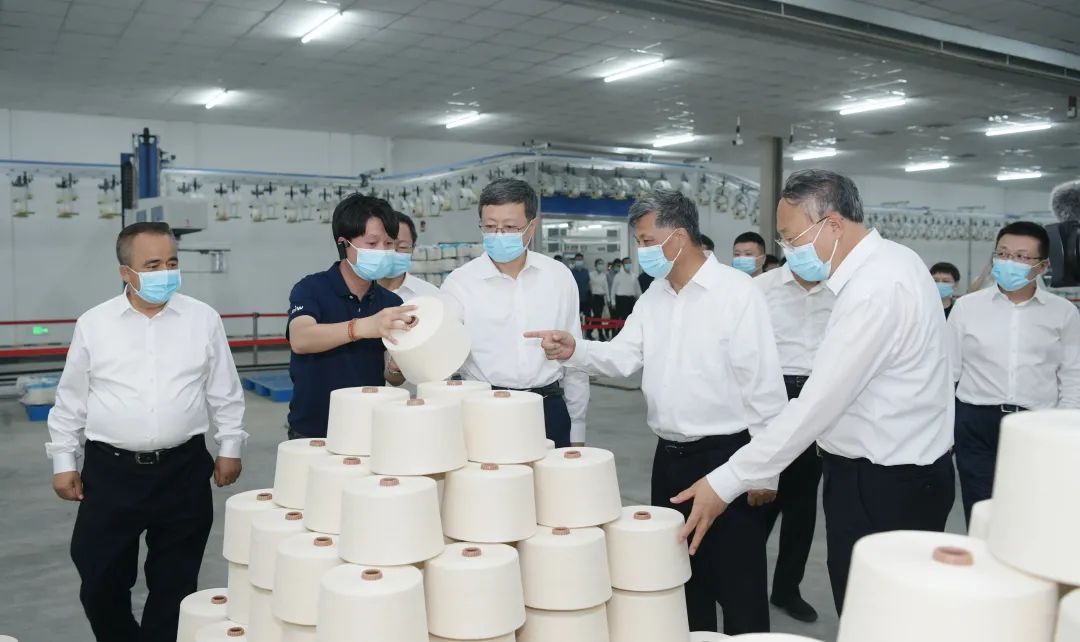 新疆睿灏纺织有限公司由上海企业在莎车县投资建设,目前项目一期已建设完毕、部分正式投产,项目整体建成运营后将成为周边最大的数字化纺织企业之一。代表团察看了已经运行的30万锭生产车间,了解原料供应、技术创新、市场开拓以及吸纳当地群众就业、产业集群发展等情况。陈吉宁鼓励企业立足当地原料优势、人力资源优势,更好发挥头部企业引领带动作用,在延伸产业链、打造供应链、提升价值链上不断取得新成效,更好助力当地形成产业生态、打造产业集群、拓展就业岗位。