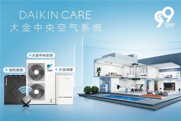 2023年,大金创新性地提出大金DAIKIN CARE中央空气系统,将空调、新风、地暖智联一体,同时不仅于交付,在用户入住及使用中也始终有空气管家提供主动式服务,实现了从空调到空间再到全生命周期的空气服务的概念升级。