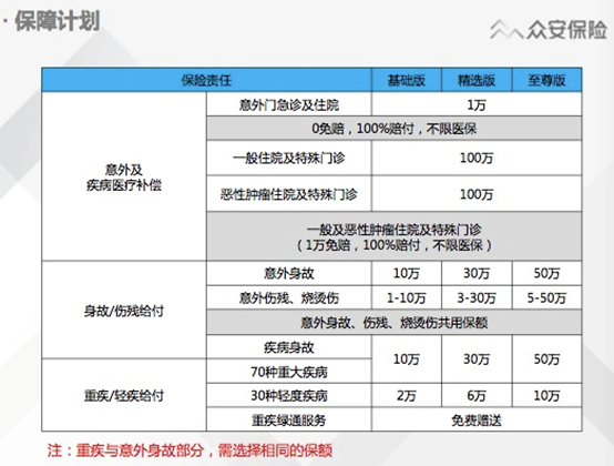 全保通提供了医疗保障、重大疾病保障、意外伤害保障和身故保障,可以说是健康保障方面的“全险”。简单点说,被保险人因为小意外接受门诊治疗,因为疾病住院,因为发生重大疾病影响收入,甚至不幸伤残或者身故,都可以获得相应的给付或者医疗报销。
