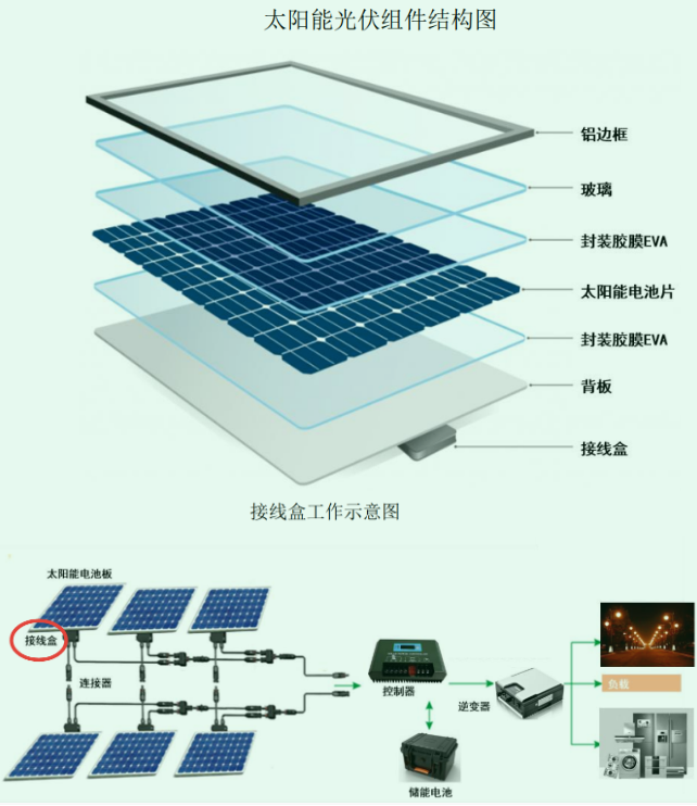 光伏组件主要由电池片、玻璃、胶膜、背板、接线盒及连接器等构成。接线盒作为光伏组件核心配件之一,主要承担电池板的功率输出和线路保护,是光伏组件电流的“调控中枢”。