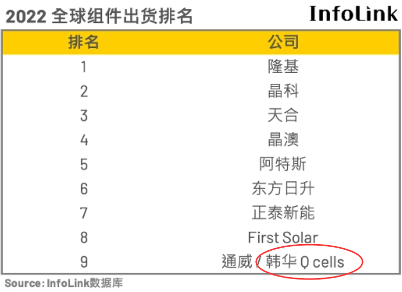 TCL中环在中国大陆的组件平台主要是环晟光伏。2022年TCL中环的光伏组件营业收入为108.41亿元,同比增长77.20%,2022年产量为6.62GW。