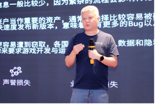 网易易盾游戏安全负责人卓辉在《真实攻防对抗,游戏安全风险大揭秘》主题分享中提到,游戏安全风险是伴随着游戏全生命周期而存在的,并不是某一个阶段的产物。比如游戏研发中的隐私合规问题,发行阶段的核心数据风险、游戏协议安全风险,游戏运营中的反外挂作弊风险和内容安全风险。