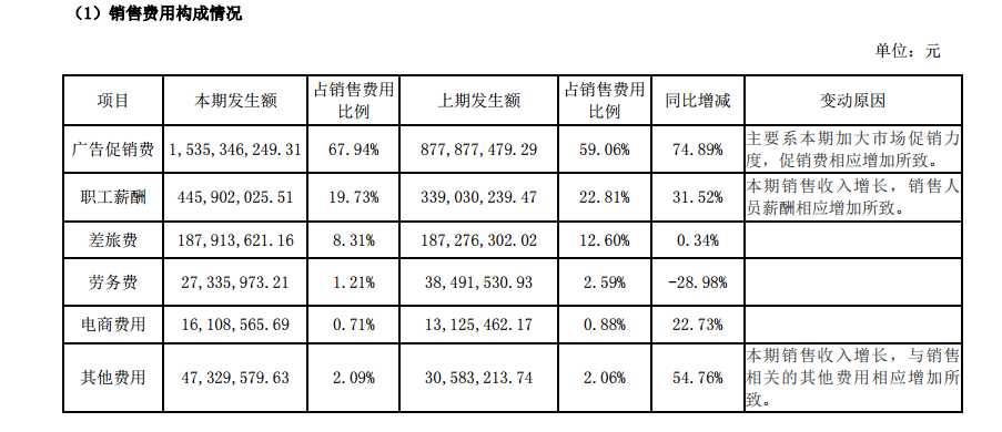 对于销售费用变动原因,今世缘称:主要系销售增长消费者培育及广告投入增加所致