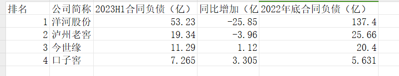 财报显示,上半年,这4家公司中,合同负债变化最大的是洋河股份,6月底合同负债53.23亿,同比减少25.85亿,较去年底更是大幅减少84.17亿。
