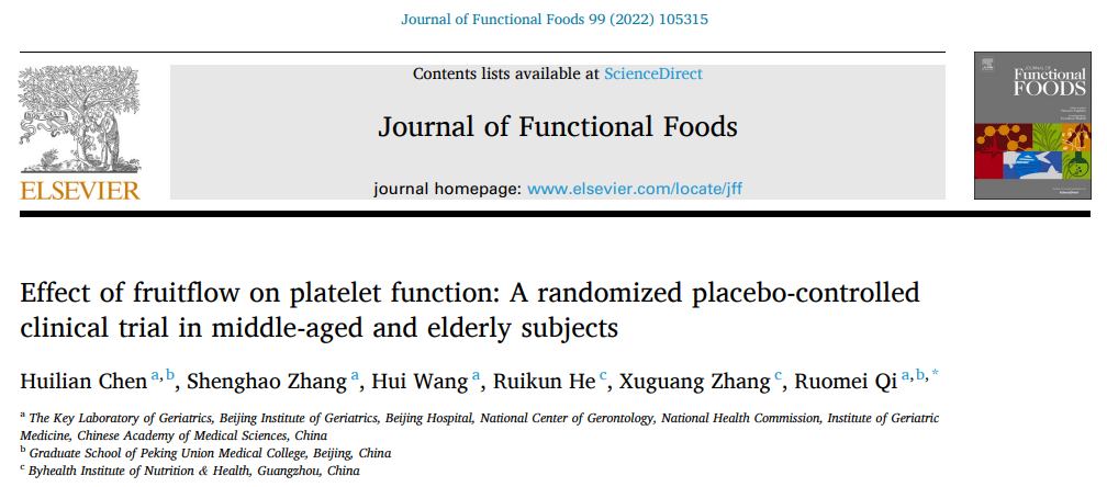此次汤臣倍健申报的新络素片,以Fruitflow®(轻络素)针对中国人群血流健康影响的临床验证及相关机制研究,填补了国内该功能评价体系的空白,研究成果相继发表在《Journal of Functional Foods》《Frontiers in Nutrition》等国际权威杂志。