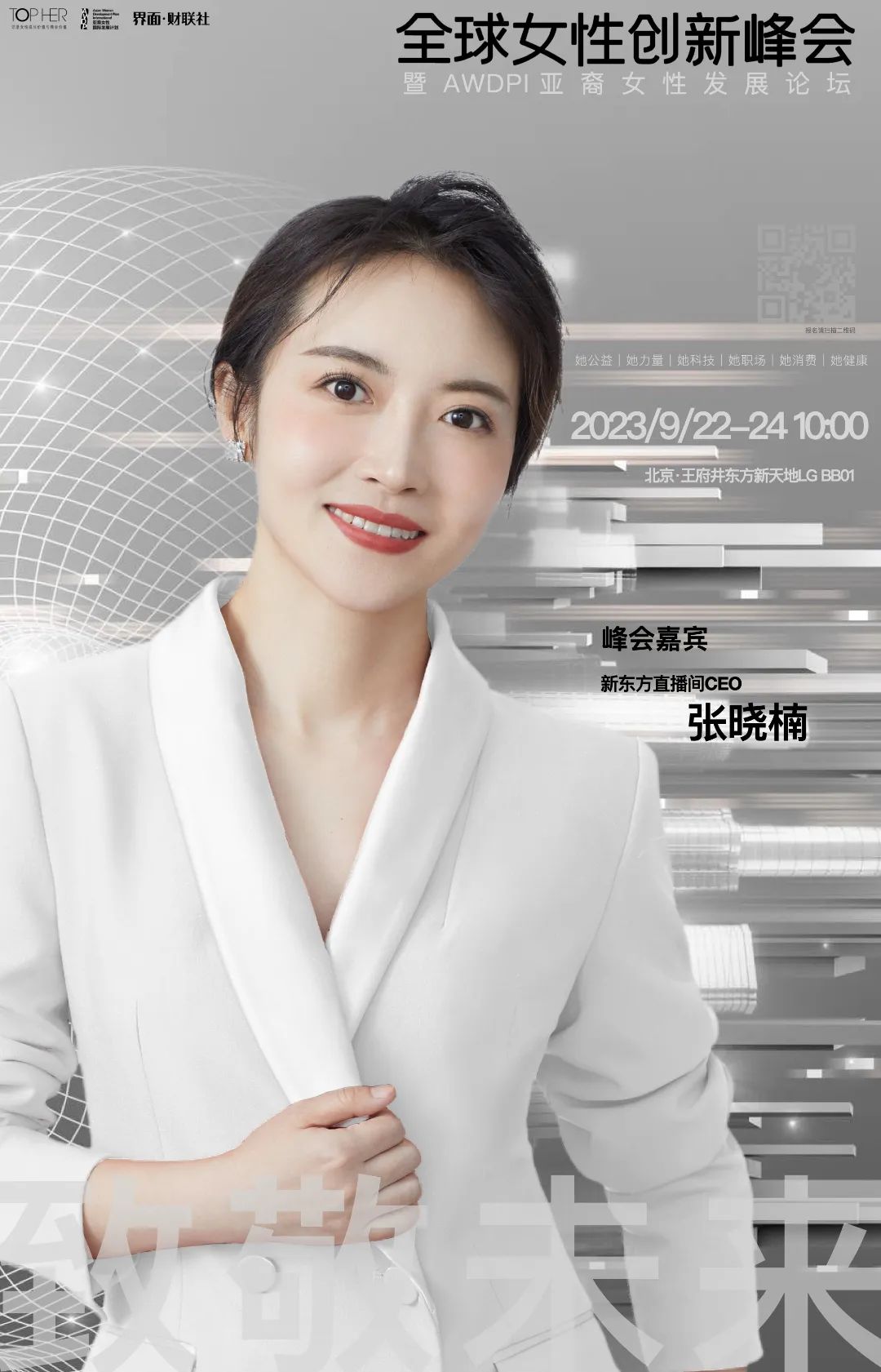 2023年,TOPHER、界面携手公益组织AWDPI亚裔女性国际发展计划,以“致敬未来”为主题,将于9月22-24日,在北京王府井东方新天地举办“2023全球女性创新峰会暨AWDPI亚裔女性发展论坛”。
