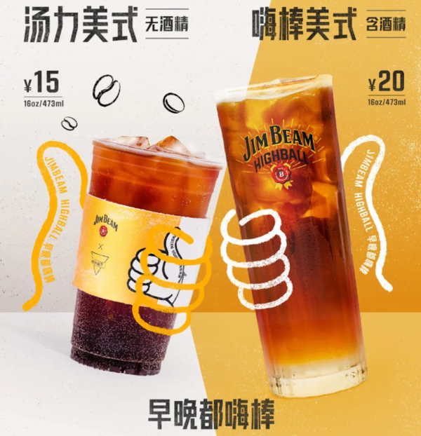 近日,MANNER携手JIM BEAM推出两款特调饮品「汤力美式」和「嗨棒美式」。「汤力美式」香水柠檬搭配双倍咖啡浓缩,注入冰爽气泡,加上青柚独特的甘甜气息,沁人心脾,此款不含酒精。「嗨棒美式」融入加倍坚果风味咖啡液与金汤力气泡水,碰撞出留香持久的柠檬风味与口感醇香的波本威士忌,此款酒精度5%vol左右。两款产品将于8月30日上市,售价分别为15元/杯和20元/杯。(品牌官方)