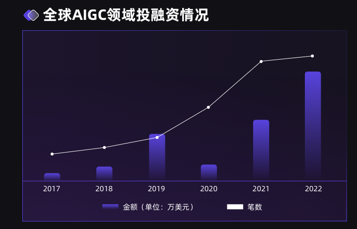 但AIGC是一个长跑赛道,目前看AIGC的融资额逐年增长,市场也在指数级扩张。仅AI绘画领域,在国泰君安研究报告就显示,未来五年,AI绘画在图像内容生成领域的渗透率将达到10%-30%,市场规模将超过600亿元。