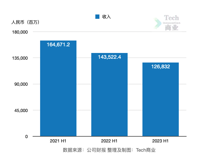 根据财报,小米公司2023财年上半年收入为1268亿元,同比上一财年同期的1435亿元,收入下降11.6%。该公司2022财年上半年同比2021财年同期的1647亿元,收入下降13%。即该公司近两个财年上半年收入连续下降。