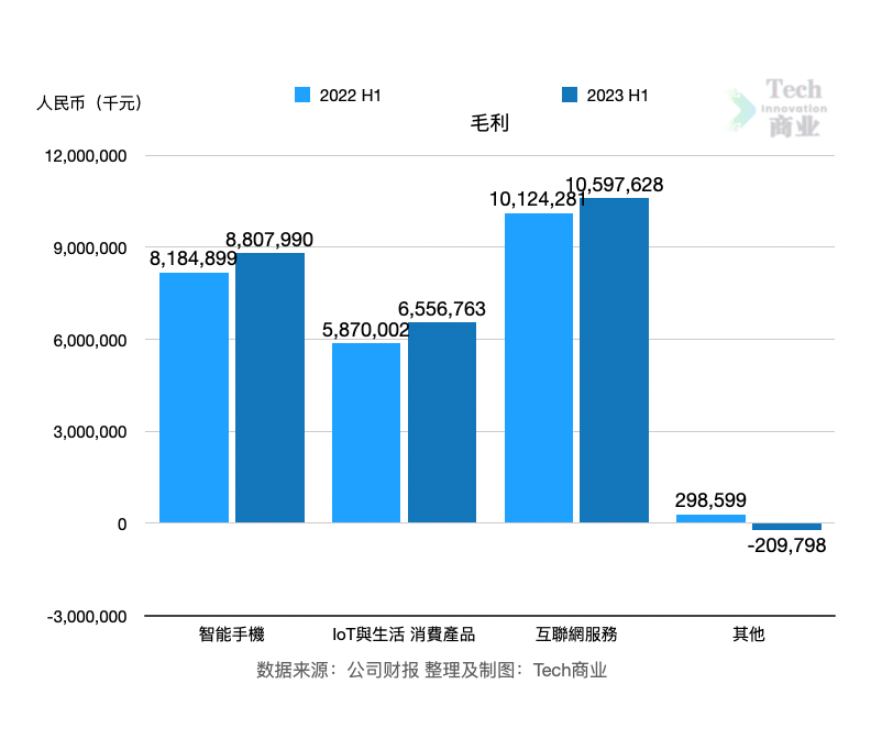 来自IoT与生活消费产品的毛利为66亿元,同比增幅为12%。