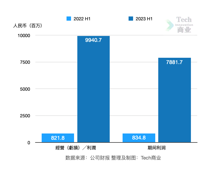 根据财报,小米公司上半年经营利润额为99亿元,上一财年同期为8.2亿元,本期经营利润显著增长。该公司上半年净利润为79亿元,上一财年同期利润为8.3亿元,本期该项利润显著增长。
