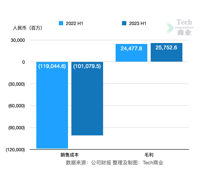 该公司上半年毛利为258亿元,同比增长5%。