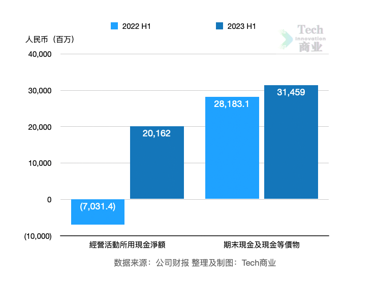 2023财年上半年小米公司经营活动现金净流入202亿元,上一财年同期净流出70亿元,本期该项现金流显著改善。截至上半年,该公司期末现金及现金等价物额为315亿元,同比增幅为12%。