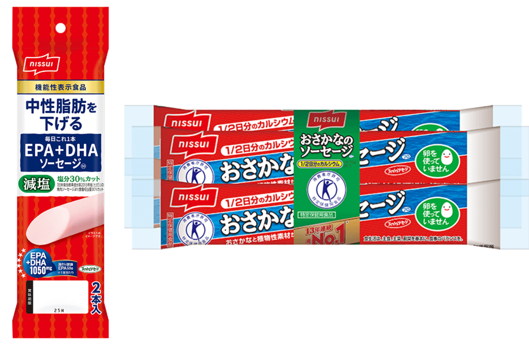 在产品方面,日本Nissui推出2款具有功能宣称的鱼肠。一款添加了EPA和DHA,具有降低甘油三酯水平的作用,此外产品减盐30%,每只鱼肠(50g)含有650mgEPA和400mgDHA。另一款添加了丰富的钙,有助于保持骨骼健康,降低骨质疏松的风险。