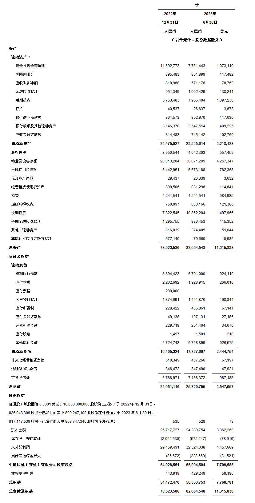 - 截至2023年6月30日,揽件/派件网点数量为 31,000 余个。