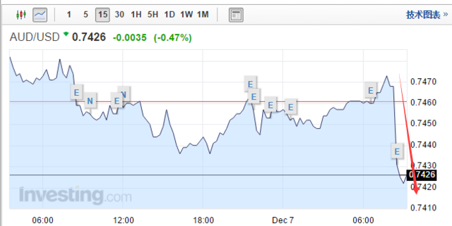 数据公布后,澳元兑美元跳水至0.7421,澳大利亚10年期国债收益率跌5个基点至2.77%。澳大利亚S&P/ASX200 指数回吐涨幅。